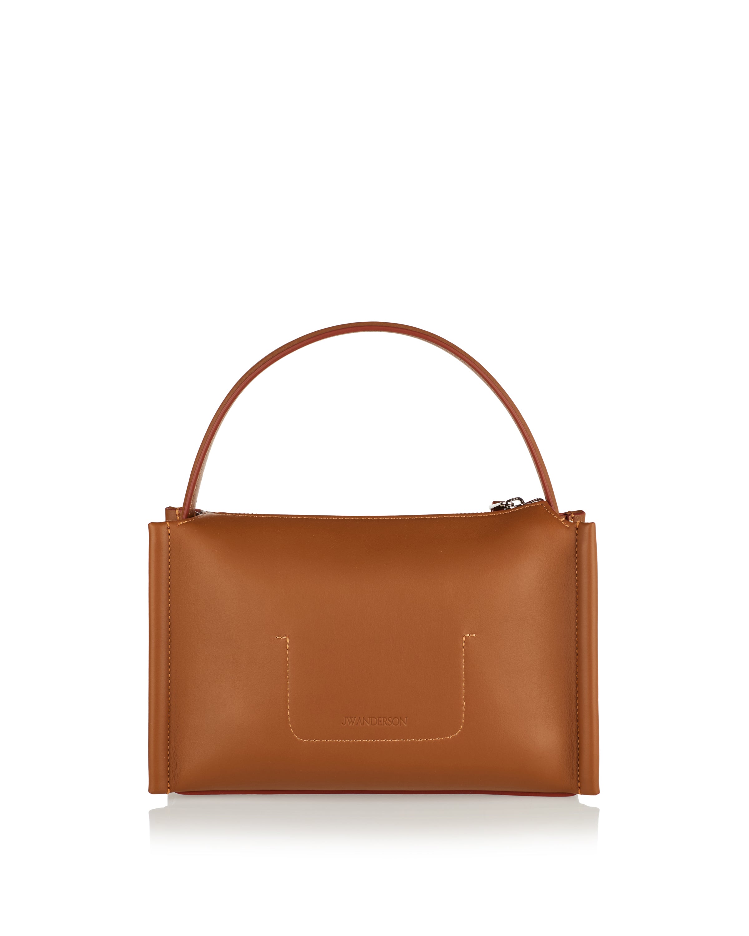 A refined leather shoulder bag ideal for both casual and formal occasions. Crafted from smooth tan leather with a structured silhouette, the JW Anderson Loafer bag features signature hardware accents and a versatile design, combining modern elegance with functional luxury.