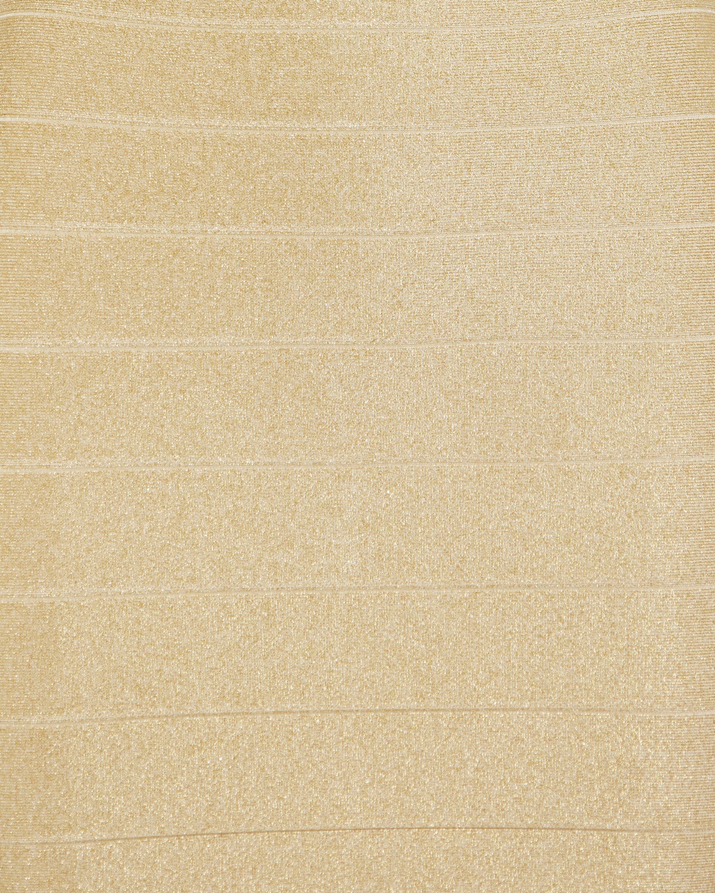 A metallic gold bandage dress featuring Hervé Léger’s signature figure-hugging fit. Perfect for evening events and cocktail occasions, the dress combines sculpted tailoring with contemporary glamour. Its shimmering finish and sleek silhouette create a standout statement piece for elevated, sophisticated ensembles.
