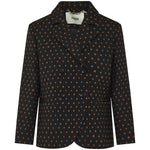 Tailored blazer crafted from a stretch wool blend, defined by an all-over print and a sharp, structured silhouette for modern statement dressing.