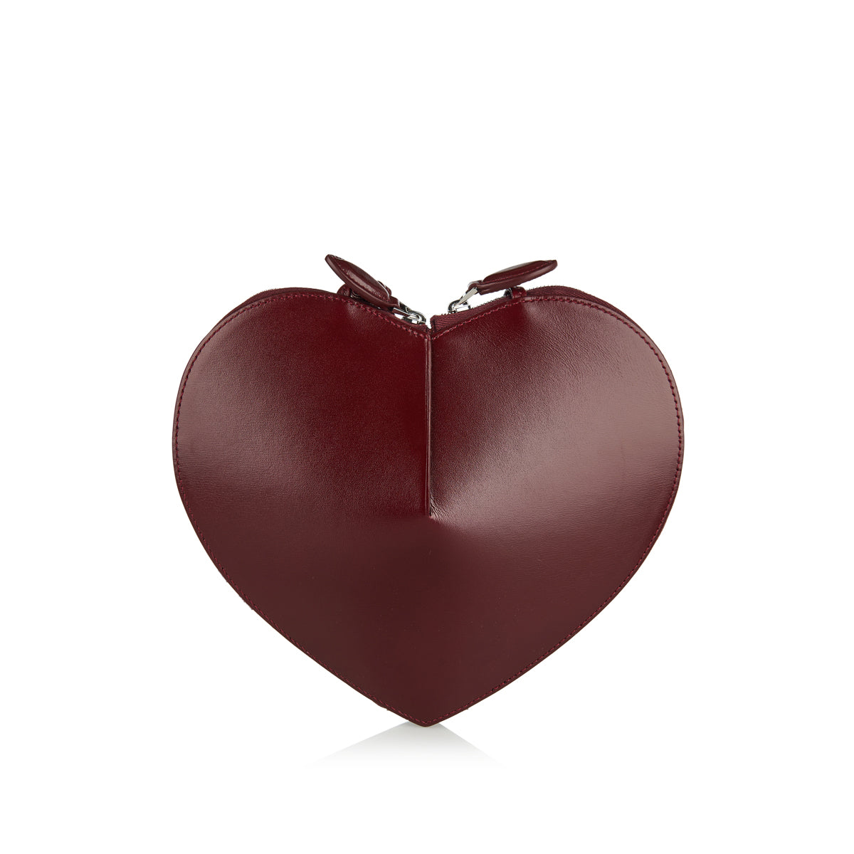 Making a statement with its heart shape, the Maison's Coeur bag is sculpted from burgundy leather in a compact design featuring top zip closure, one compartment and adjustable strap. Alaïa signature is detailed at the front.