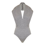 This Balmain bodysuit is crafted from a luxurious wool‑blend jersey, featuring a deep V‑neck and dramatic hood that drapes elegantly over the shoulders. The open back adds a bold touch, while the integrated waist insert enhances the figure. Ideal for evening events or high‑fashion styling, this piece combines comfort with couture appeal.