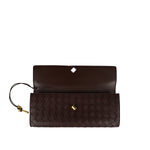 Bottega Veneta's Andiamo clutch bag is crafted from leather and is woven in the historic Intrecciato pattern. Knotted metallic closure, one top handle, six card slots and one additional pocket complete its design.