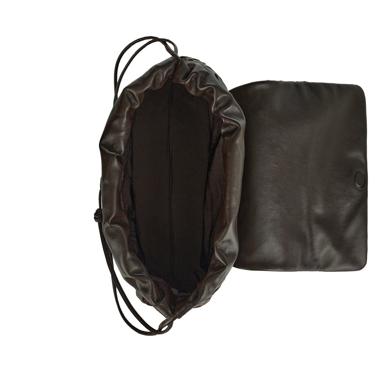 A refined leather bag from Bottega Veneta in Fondant‑tone calfskin, designed with a relaxed pouch silhouette, drawstring top closure and subtle shoulder‑loop detail — elevated for smart‑casual and everyday luxury carry.