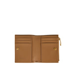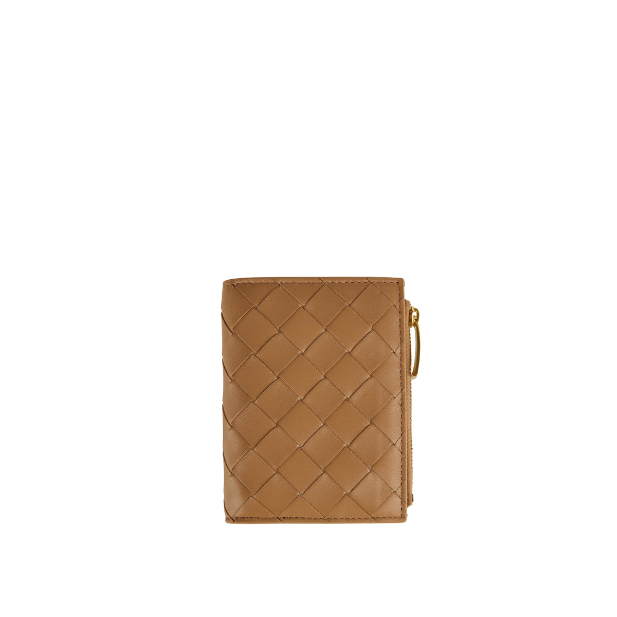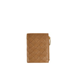 Woven in the House's Intrecciato pattern, this small wallet in brown is shaped to a bi-fold design equipped with one note compartment, one zip coin purse and six card slots.