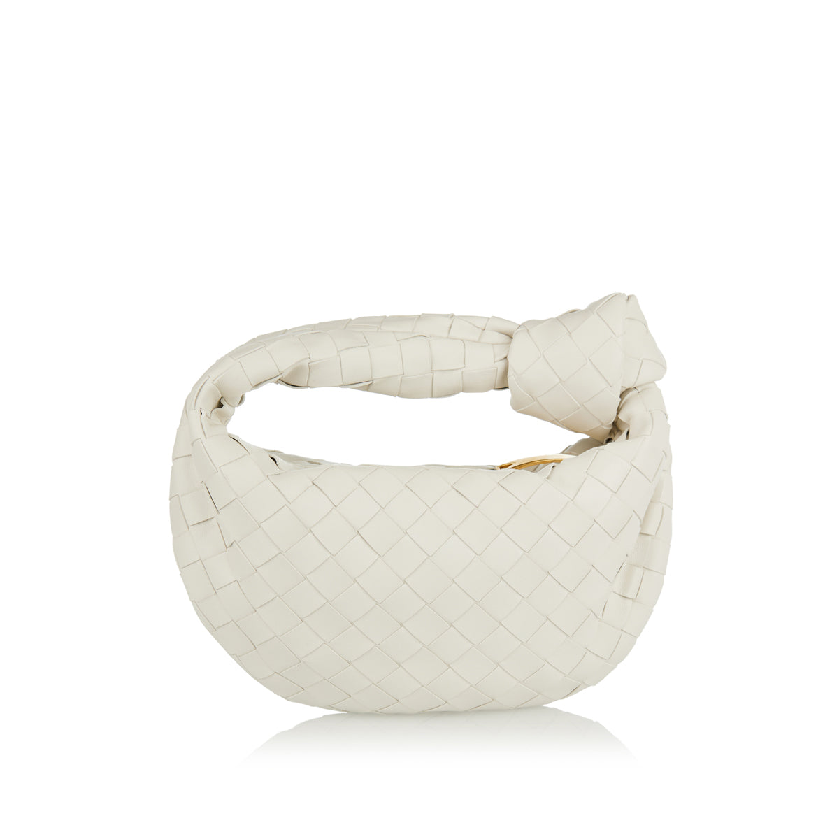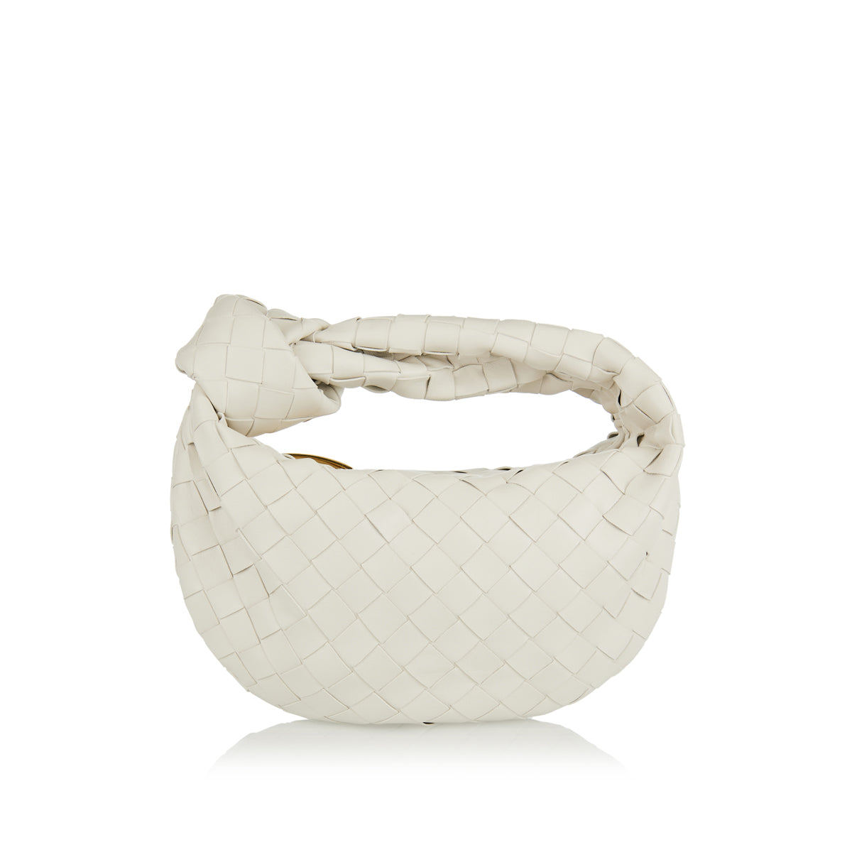This Jodie model is crafted from leather in a mini rounded hobo silhouette handwoven in the label’s iconic Intrecciato pattern. It has a slouchy design with draping, finished with a knot on the top handle. The zipper opens to one internal compartment equipped with a zipper pocket.