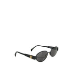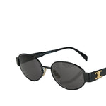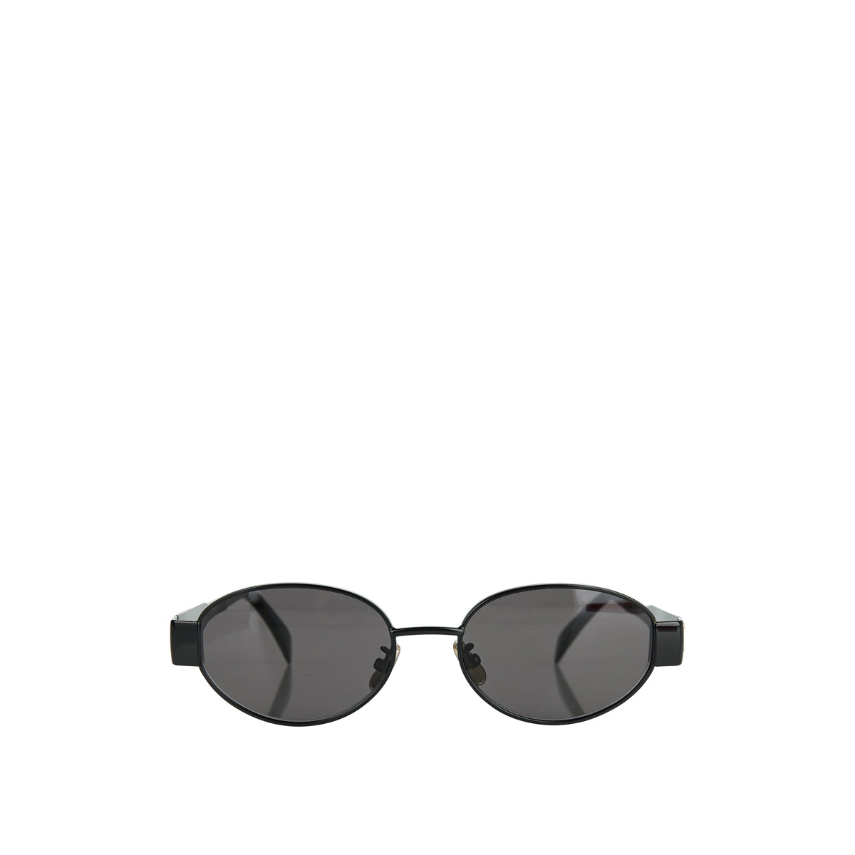 The Celine Triomphe Metal 01 Sunglasses feature a metal frame with an oval shape, complemented by smoke lenses that provide protection from UVA and UVB rays. The design is accented with the gold Triomphe signature on the temples, adding a touch of luxury.
