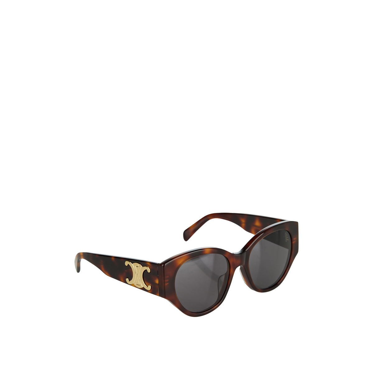 The Celine Triomphe XL 03 Sunglasses in Classic Havana feature a bold cat-eye acetate frame in a rich tortoiseshell pattern. Complemented by smoke lenses offering 100% UVA and UVB protection, these sunglasses are accented with a gold-tone XL Triomphe signature on the temples, embodying a blend of modern elegance and timeless luxury.