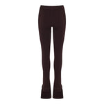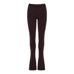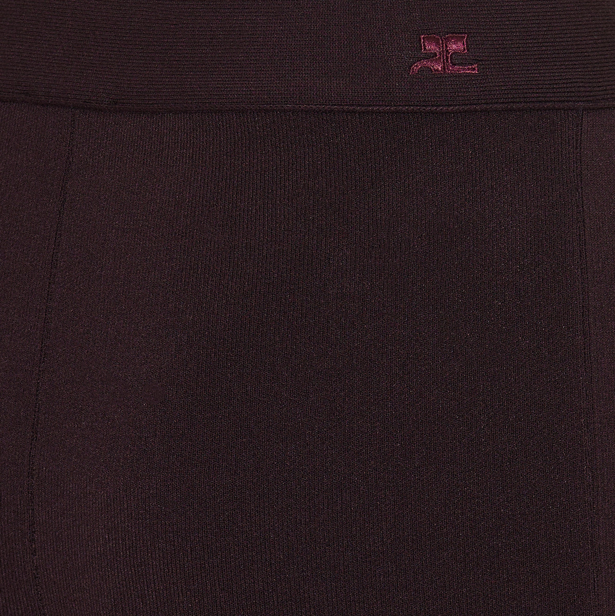 The Courrèges Bootcut Interlock Trousers in Burgundy offer a sleek and contemporary silhouette. Crafted from a blend of 70% viscose and 30% polyester, these trousers feature a high-rise elasticated waistband, a close-fitting slim silhouette, and a slight flare at the hem with a front hem slit. The adjustable ankle strap tab adds a touch of modernity to this minimalist design.
