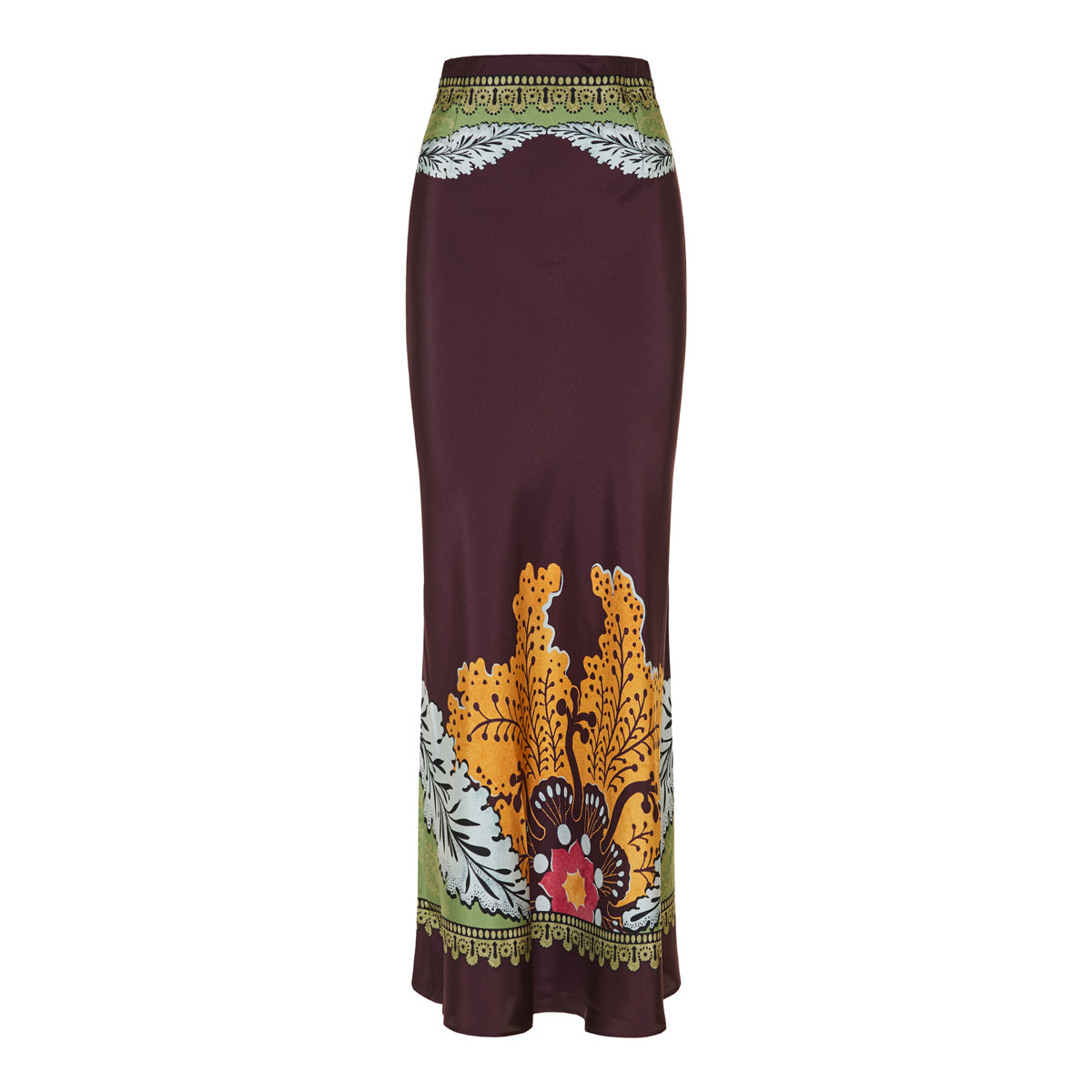 A flowing silk maxi skirt adorned with La DoubleJ’s signature Bounty Placée print. Cut with a high waist and fluid drape, it’s ideal for elegant evening wear or refined daytime styling. Subtle yet striking, it embodies effortless sophistication.