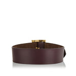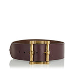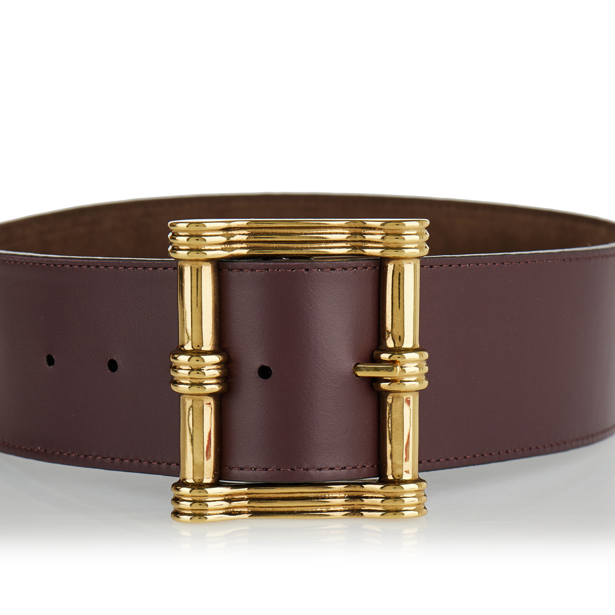 Etro’s wide leather belt showcases a bold square gold-tone buckle and a deep red hue, offering a refined statement for tailored looks. Crafted in Italy, it reverses to suede for versatile styling.