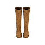 Fendi’s Filo boots bring understated luxury to everyday dressing. Crafted in supple light brown suede, the design features a minimal silhouette with rounded toe, tonal stitching, and a low stacked heel that ensures comfort without compromising elegance. A versatile choice that works with casual looks or polished ensembles, embodying the house’s refined Italian craftsmanship.