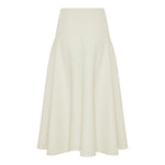 The Triangle Skirt by Jacquemus is a flared maxi skirt crafted from crisp cotton poplin. It features a high-rise waist, embroidered “J” on the front, godets, an invisible zipper on the back, and an ankle-length flared hem with invisible stitching. This elegant piece combines modern design with classic elements, offering a sophisticated addition to any wardrobe.