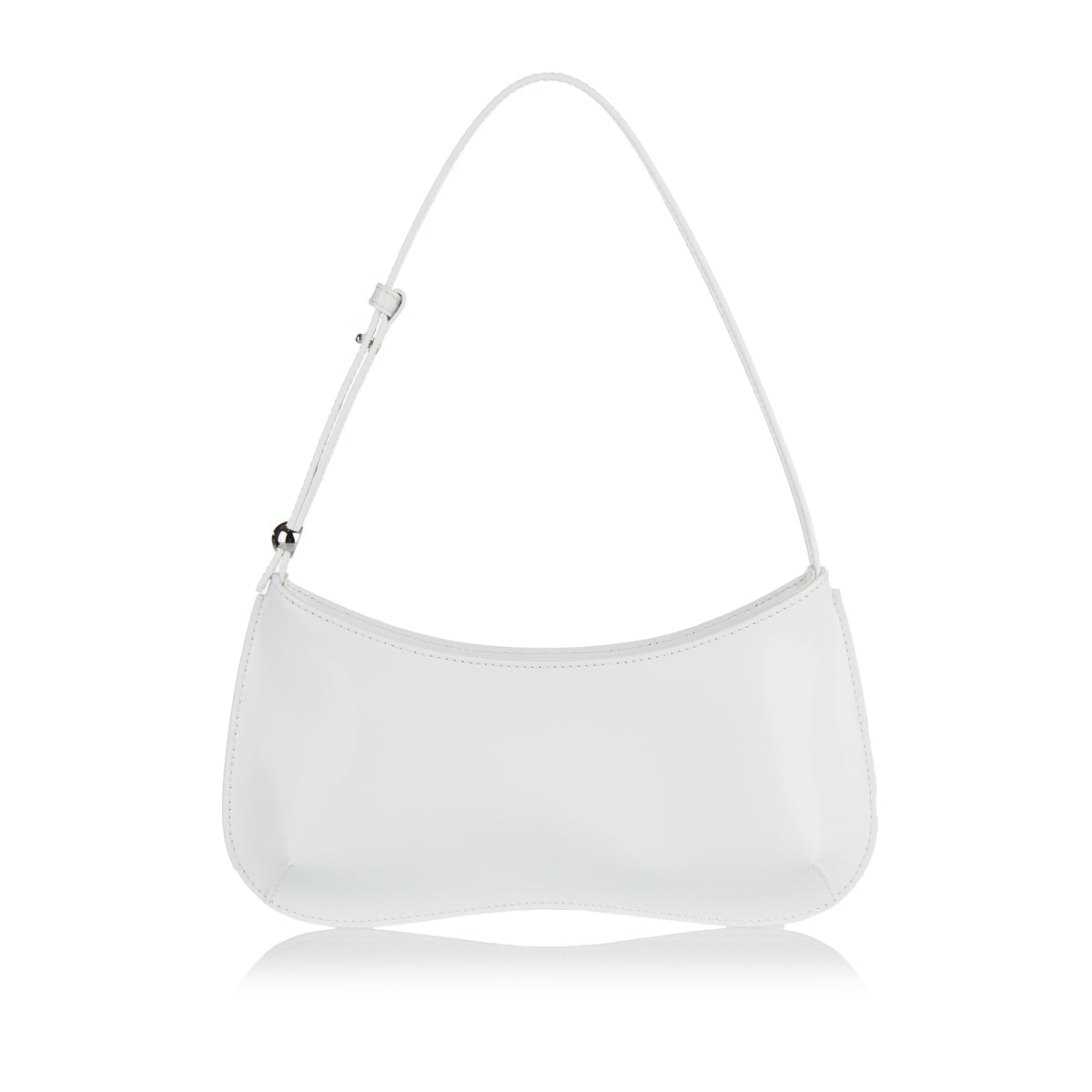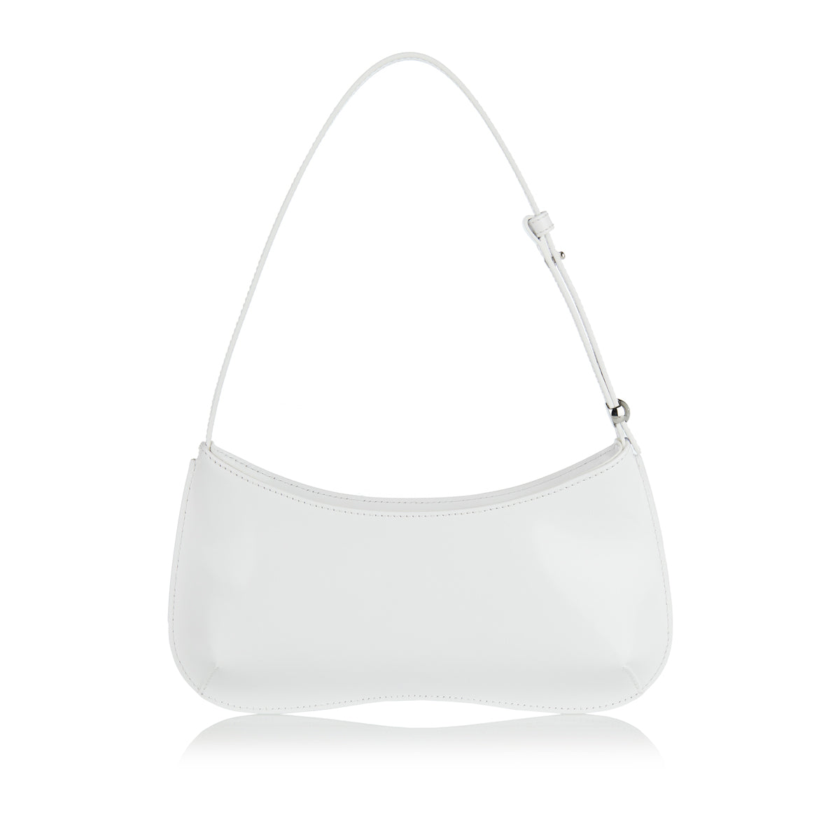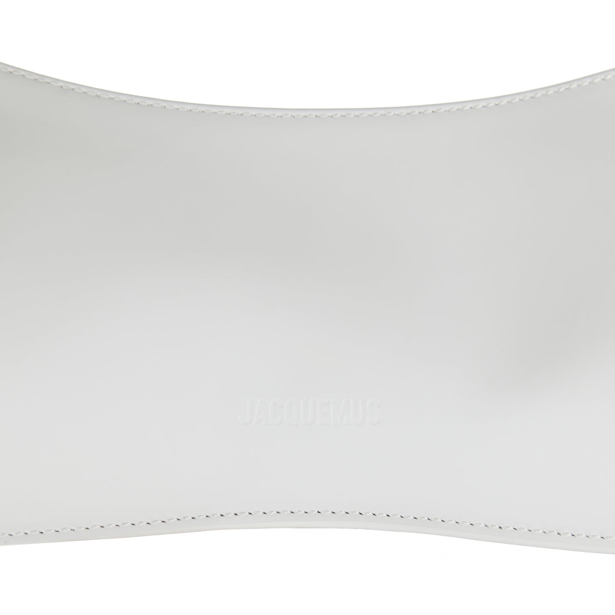 The Jacquemus Le Bisou shoulder bag is a sleek silhouette in glazed calf leather with silver-tone hardware. Featuring a zip closure, adjustable strap with engraved bead, and compact proportions, it embodies modern elegance. A versatile mini bag designed for both day and evening wear.