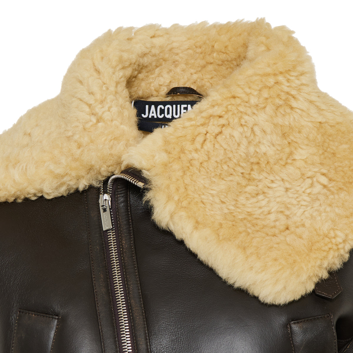 Jacquemus’ The Aviatore jacket captures the brand’s playful approach to classic silhouettes. Crafted from a soft wool-blend fabric, it features a structured cropped fit with a wide collar, dropped shoulders, and exaggerated front flap pockets. The piece nods to aviation heritage while maintaining a contemporary urban attitude, finished with tonal topstitching and a sculptural shape that flatters both casual and refined looks. A statement outerwear piece that merges practicality with modern edge.
