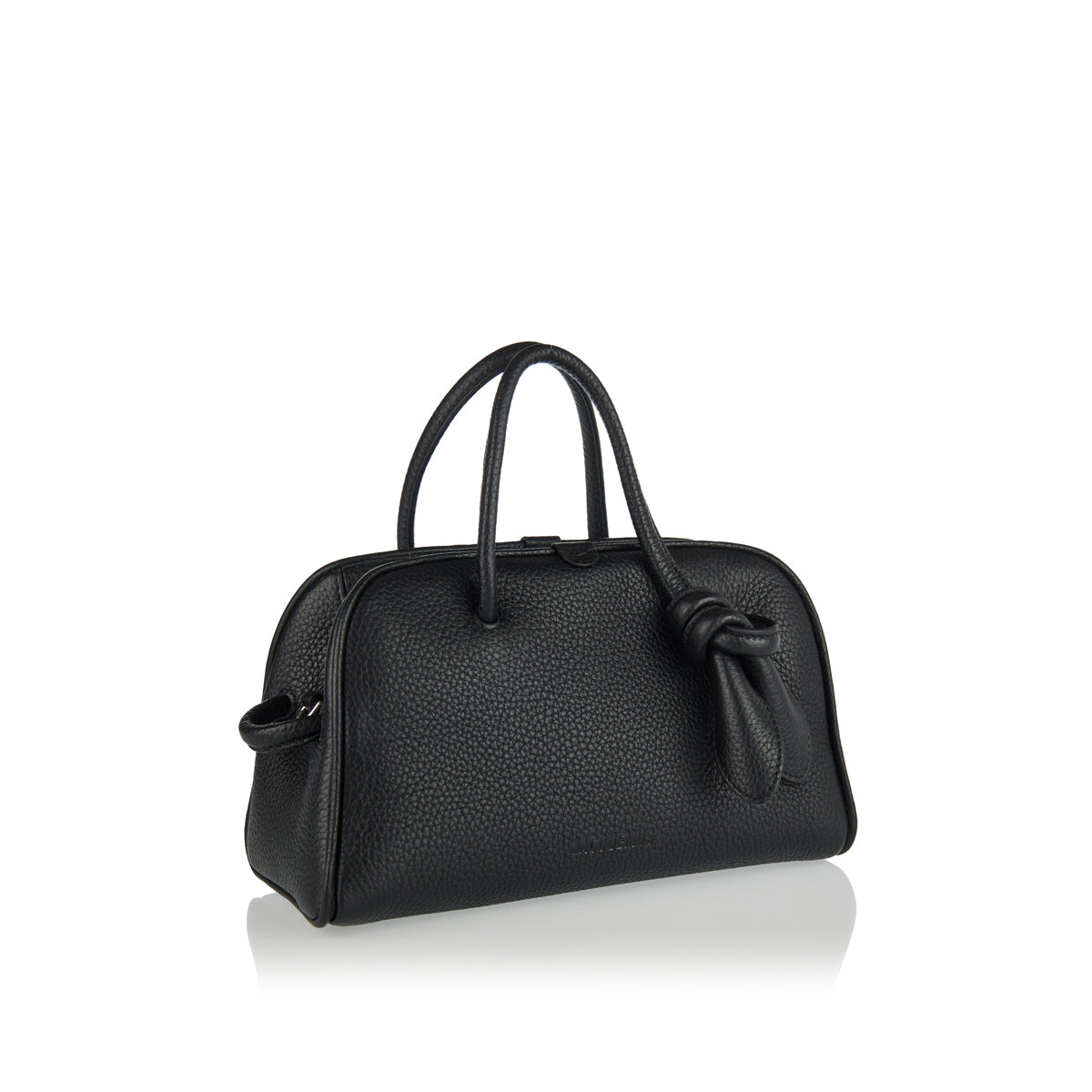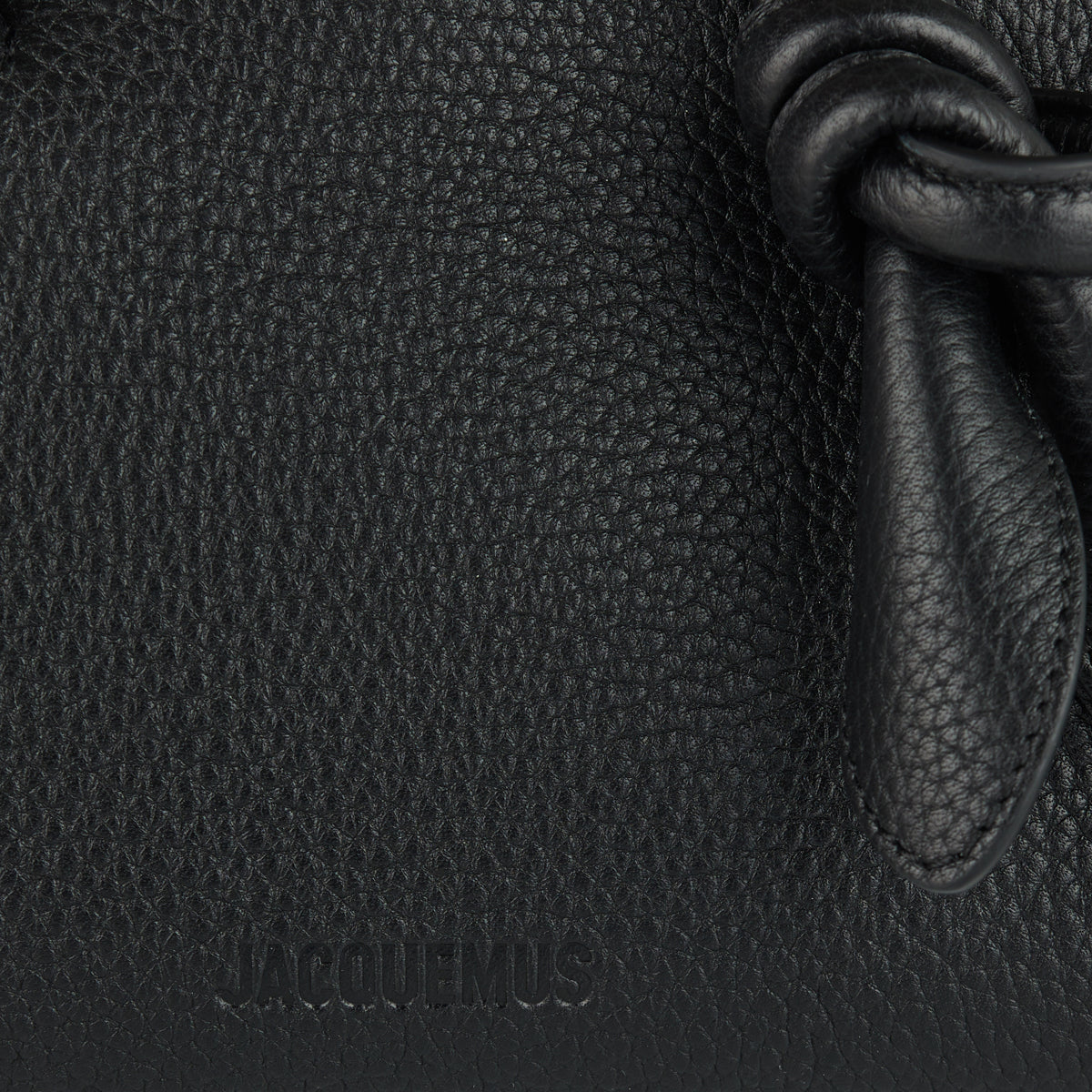This soft bowling bag from Jacquemus is crafted in grained calfskin leather and accented with a sculpted bow detail. Featuring a two-way zip closure, an inside pocket, and a detachable adjustable shoulder strap, its compact form (26 × 16 × 11 cm) transitions beautifully between day and evening wear.