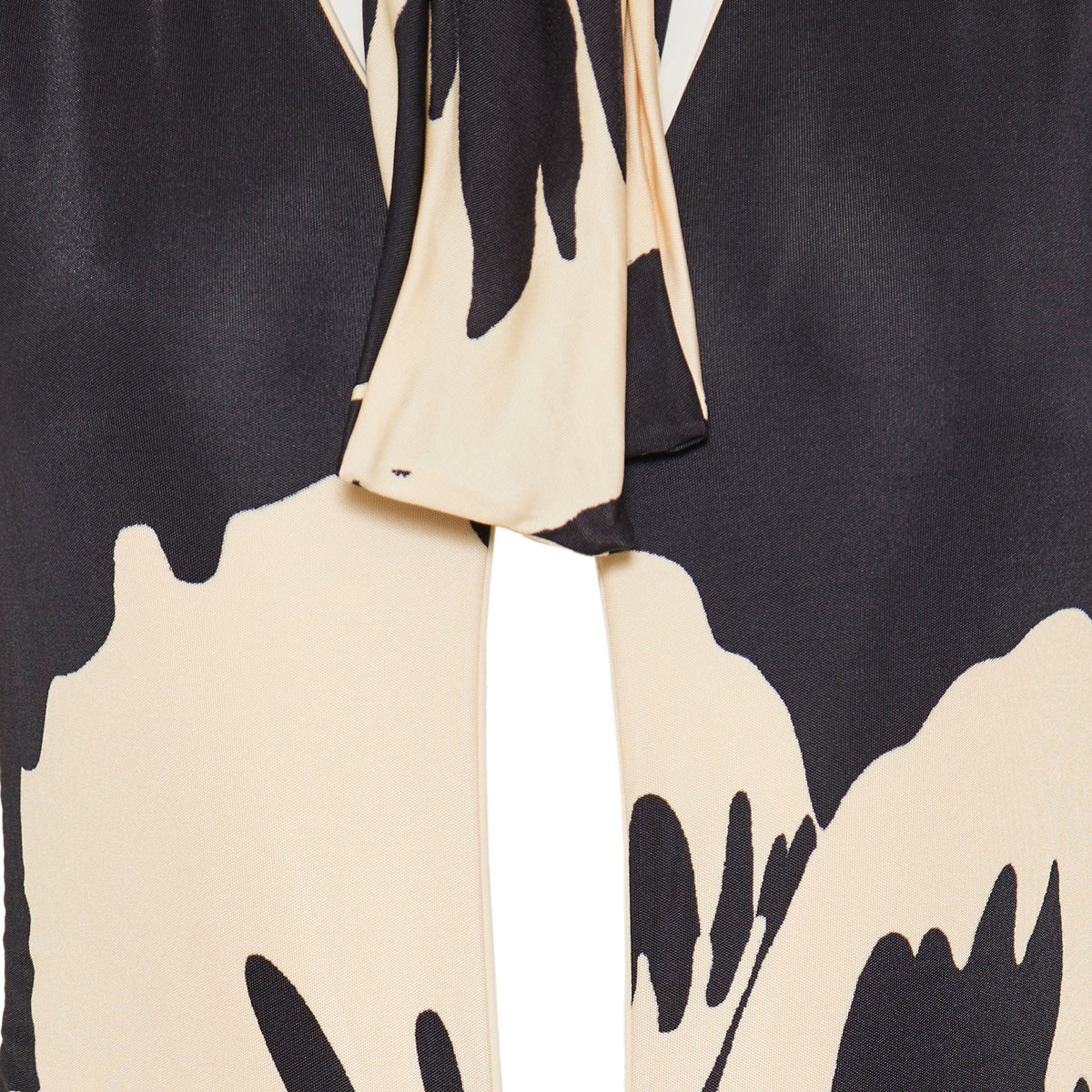 The Johanna Ortiz Legendario Bodysuit in black and ecru features a draped neckline and bold hibiscus print. Crafted from stretch shiny jersey, it offers a slim fit with a zip fastening at the back.