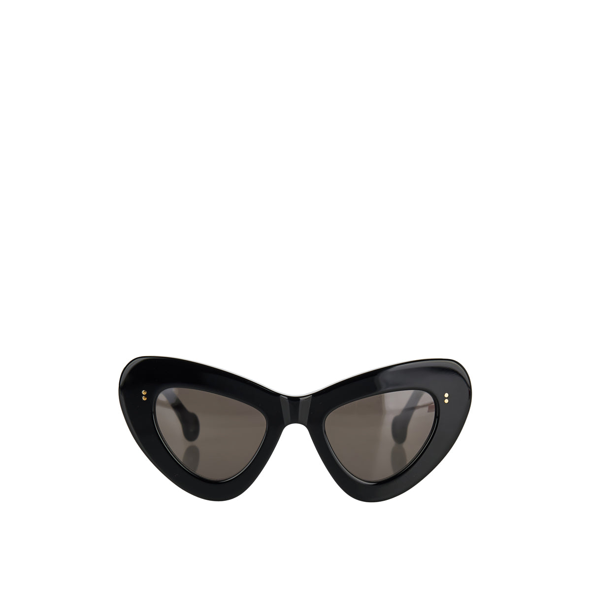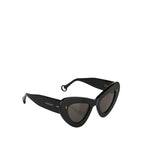 These sculptural JW Anderson butterfly sunglasses are crafted from black acetate, blending bold shape with refined design. Their oversized frame offers a dramatic silhouette, while the included moulded leather case and branded cleaning cloth elevate the presentation. Sophisticated and striking for both daywear and statement looks.