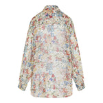 The Khaite Goya floral print silk-chiffon shirt brings delicate elegance to a classic button-down silhouette, rendered in sheer, flowing silk chiffon adorned with vibrant all-over florals. Its relaxed, slightly oversized cut and curved split hem offer effortless, refined style — perfect for elevated daywear, layering under blazers, or delicate evening outfits.