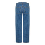 A refined pair of mid-rise jeans cut from premium cotton denim, featuring a clean straight-leg silhouette, classic five-pocket styling, and a front button with concealed zip closure. The timeless blue wash and understated tailoring make them ideal for elevated casual wear or modern minimalist wardrobes, effortlessly pairing with crisp shirts or soft knits.