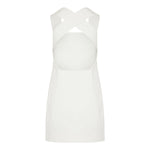 The Khaite Mella satin‑crepe mini dress presents a sleek, sculptural silhouette with wide straps that crisscross at the open back, crafted in lustrous satin‑crepe. Its minimalist, body‑skimming design and luxe drape make it ideal for elegant evening events or refined night‑out styling — a statement of modern sophistication and understated glamour.