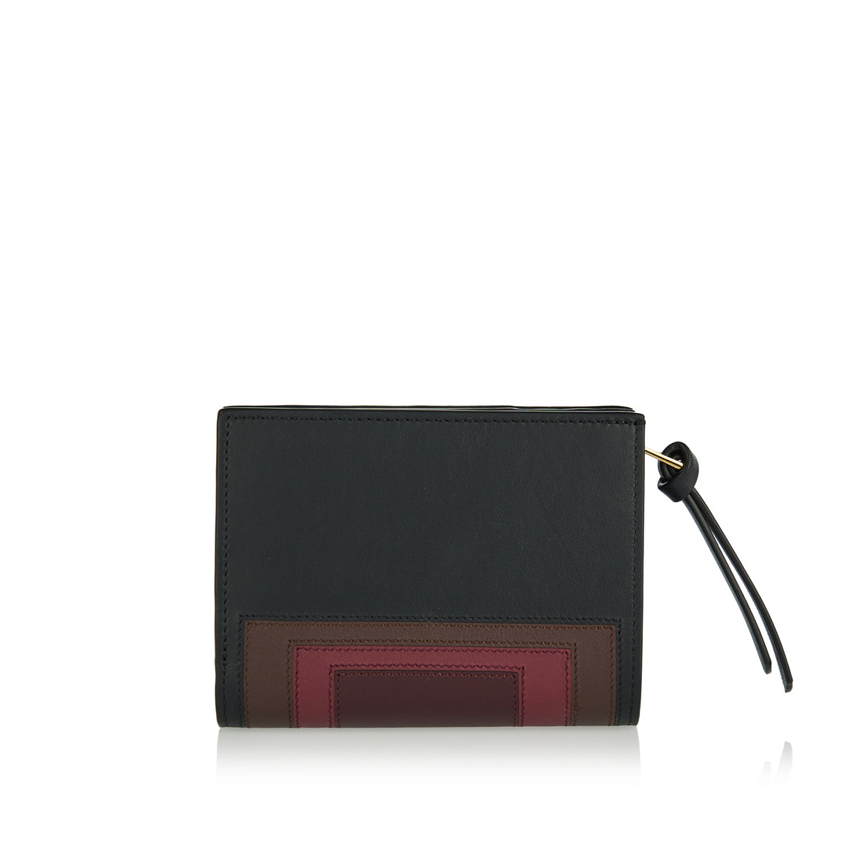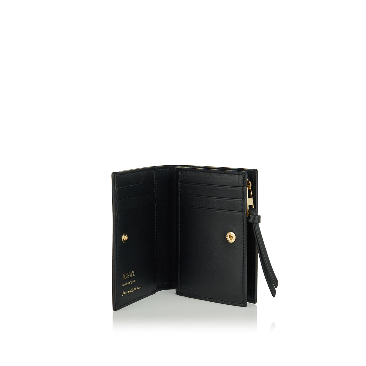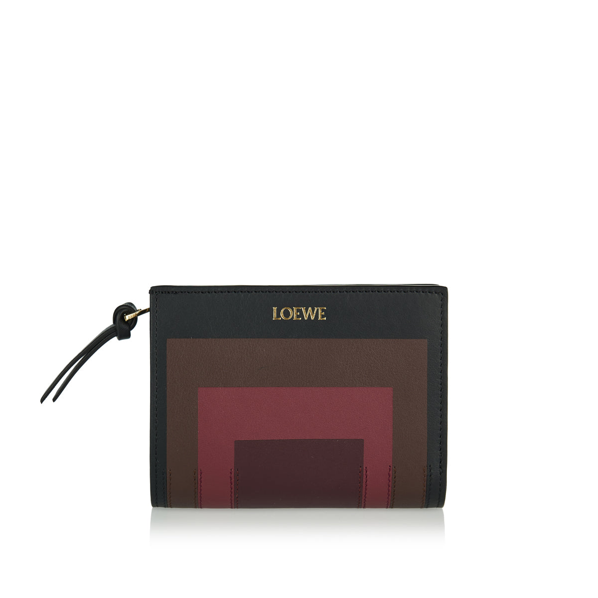 The Compact Wallet in Nappa Calfskin by Loewe is a sleek and functional accessory featuring a geometric intarsio design inspired by Josef Albers's "Homage to the Square" series. Crafted from soft nappa calfskin, this wallet offers a compact structure with multiple card slots, slip pockets, and a zipped coin compartment, making it an ideal choice for everyday use.