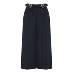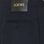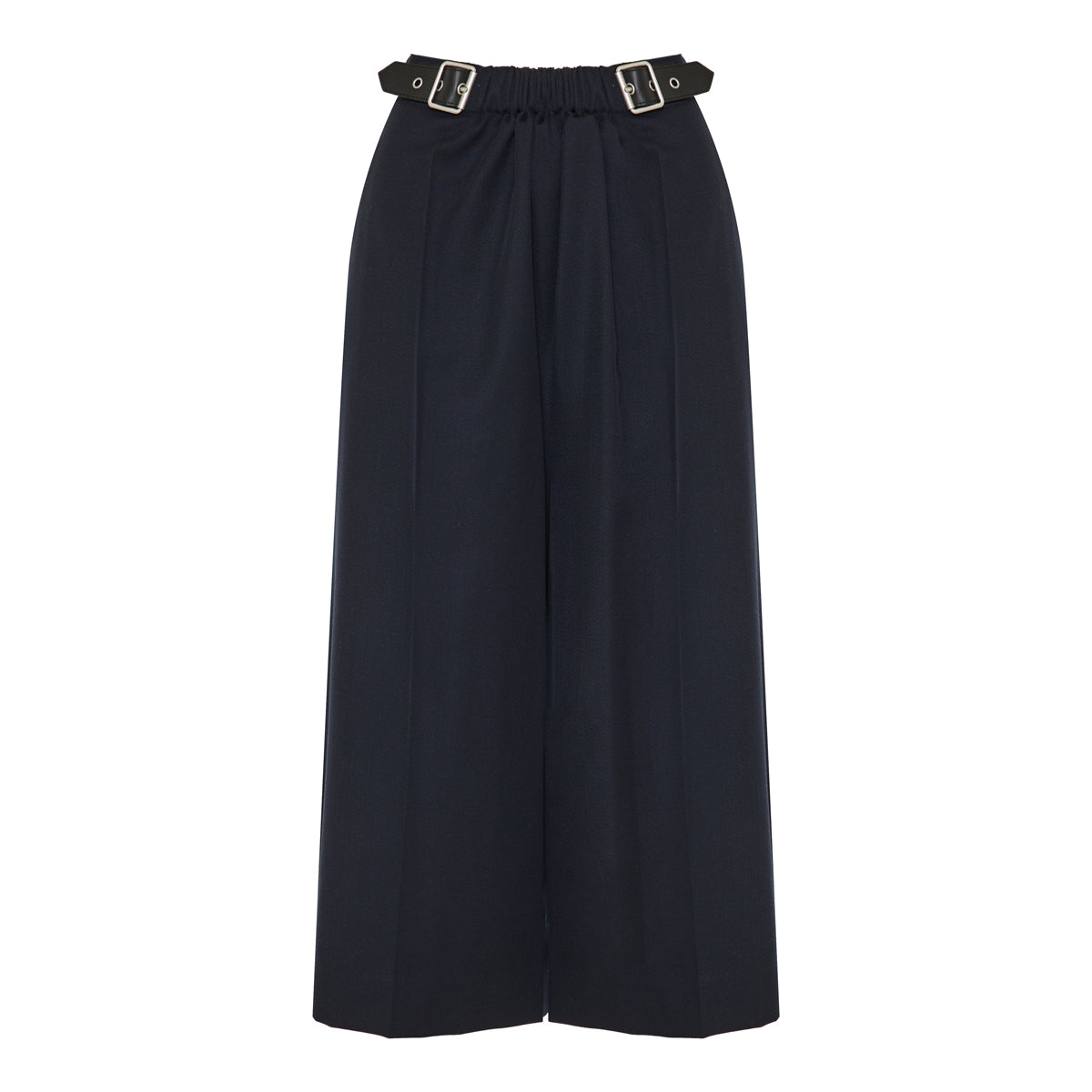Tailored trousers crafted from a medium-weight wool and silk blend, featuring a gathered front and leather belt detail. Designed with a regular fit and mid-rise waist, these trousers offer both comfort and elegance.