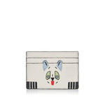 Loewe Futurist Cat cardholder in classic calfskin with leather‑marquetry cat motif and printed reverse lettering—luxury small‑leather good with artistic flair.