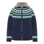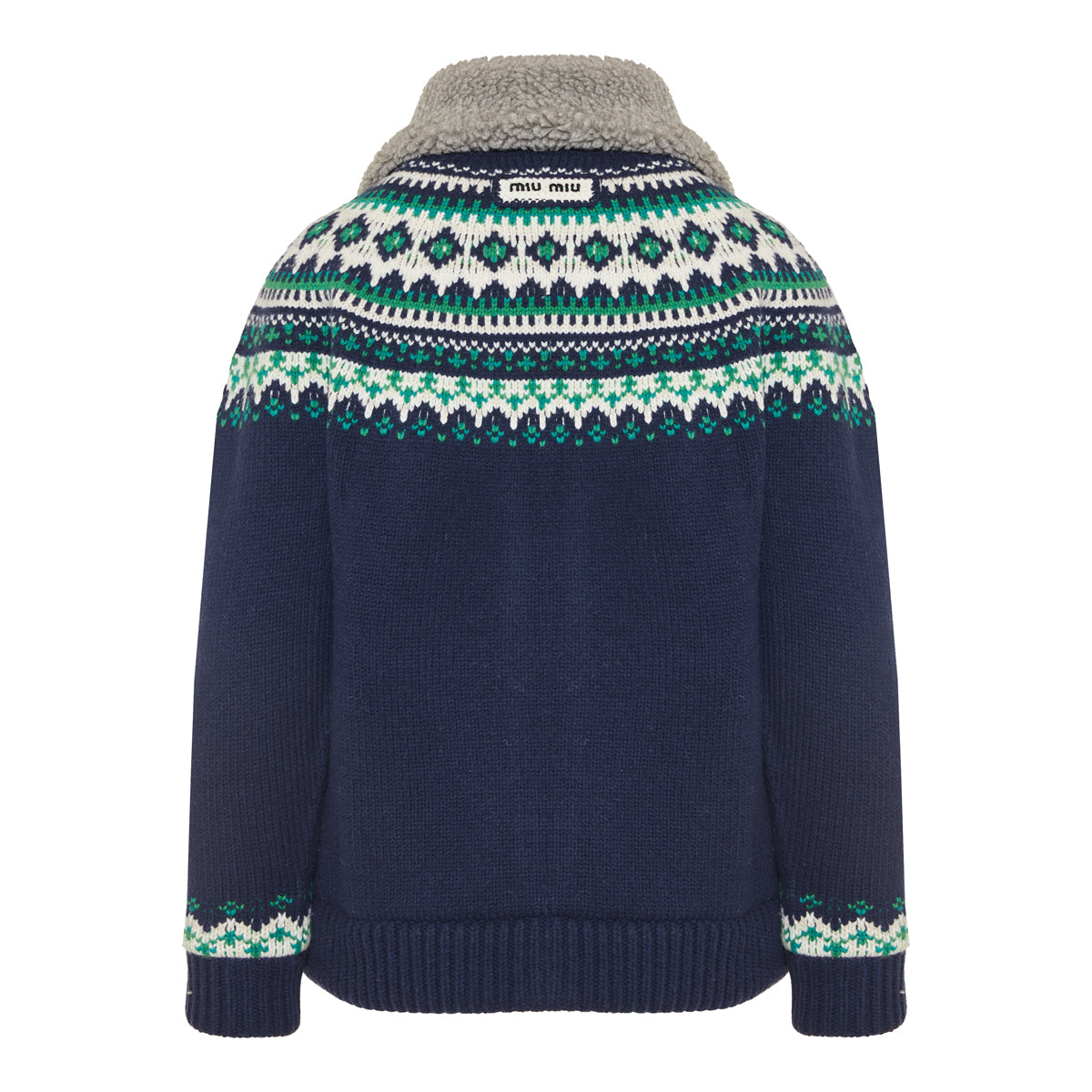 An oversized women’s cardigan by Miu Miu crafted in virgin wool with a fleece lining, featuring a front zipper closure, side pockets and ribbed cuffs and hem — designed for elevated casual and contemporary luxury layering.