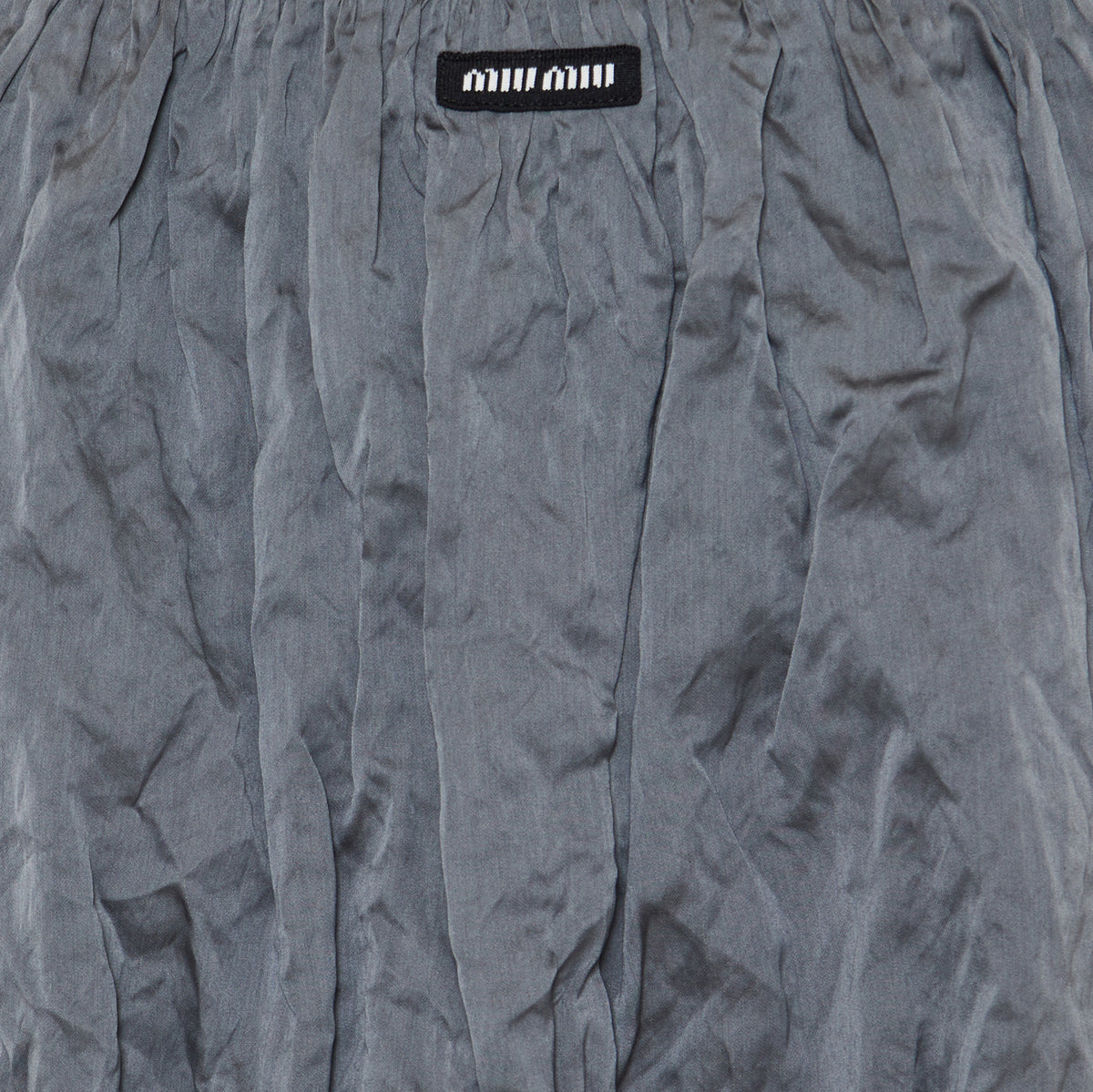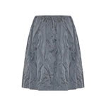 A sophisticated A-line skirt from Miu Miu in iron-gray duchesse fabric, tailored to offer a graceful volume and refined structure—ideal for elevated daywear or sophisticated evening looks.
