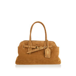 The Aventure bag from Miu Miu redefines modern sophistication through the use of soft suede and a minimalist, rounded silhouette. Its supple texture is balanced by clean lines and subtle pleating, offering a refined aesthetic suitable for day-to-evening dressing. Complete with a secure zip fastening, an adjustable strap, and a compact yet functional interior, it embodies understated luxury with a versatile, contemporary character.