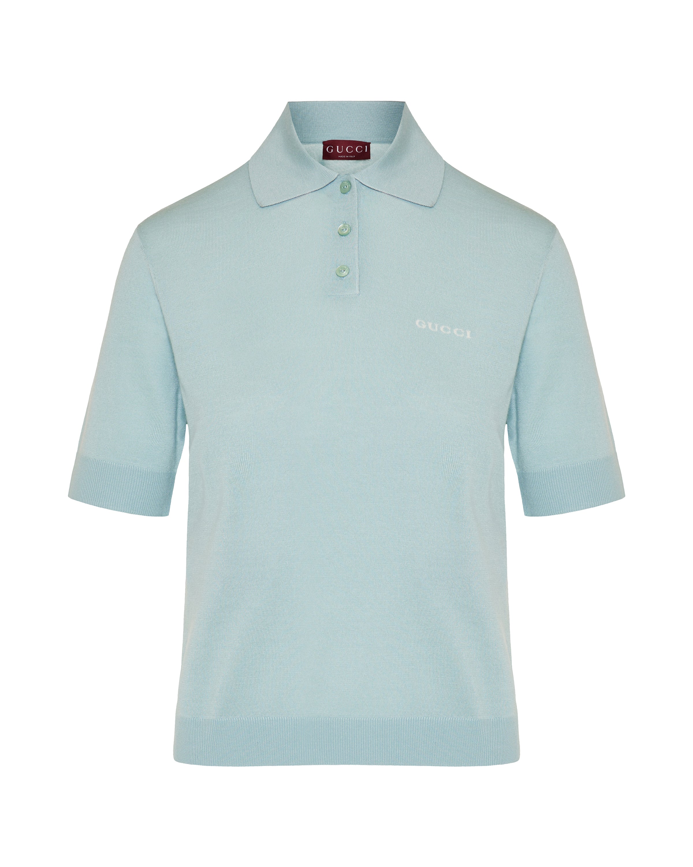 Refined and elegant, this polo top reflects Gucci’s elevated approach to knitwear. Crafted from a cashmere and silk blend, it offers a smooth, lightweight feel with a softly structured silhouette. The classic polo design is reinterpreted with a luxurious finish, making it suitable for refined everyday wear, polished casual looks, and sophisticated layering across seasons.