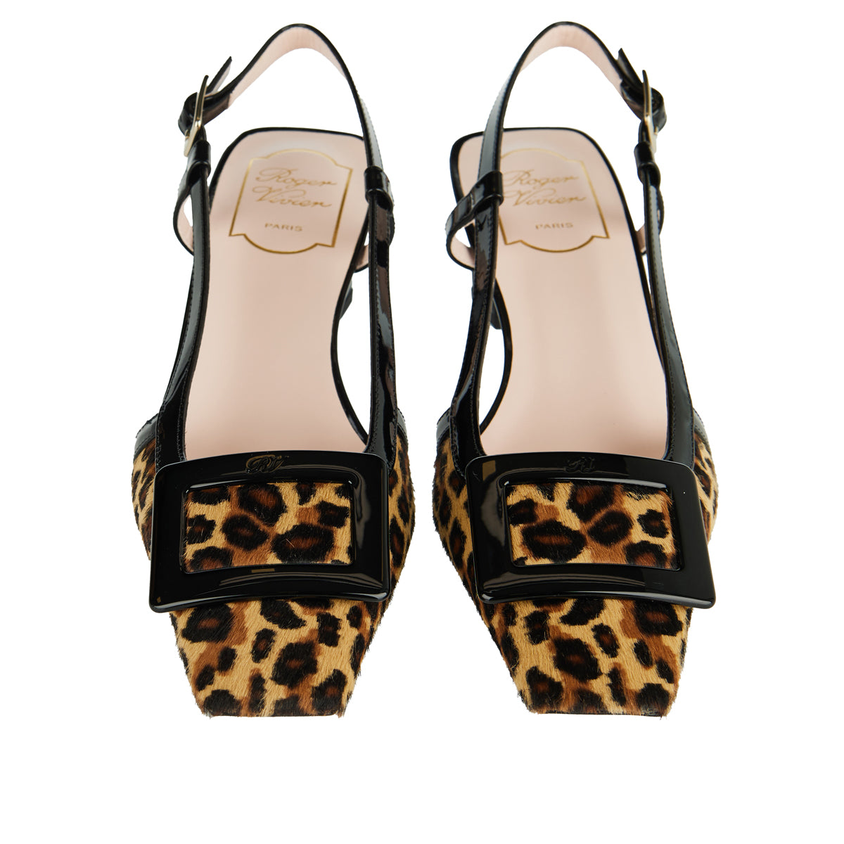 The Roger Vivier Belle Vivier Slingback Pumps in Leather are a modern reinterpretation of the iconic 1965 design. Crafted from premium calfskin leather, they feature a square toe, signature RV buckle, and a comfortable 4.5 cm Skyscraper heel. The adjustable slingback strap ensures a secure fit, making them a versatile addition to any wardrobe.