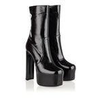 Saint Laurent’s Billy boots reimagine the house’s iconic ankle silhouette with sleek paneled construction. Crafted in smooth black leather, they feature a bold block heel of 9.5cm enhanced by a balanced platform sole for effortless comfort. Minimalist yet striking, these boots fuse structured elegance with everyday versatility, pairing seamlessly with tailoring, denim, or eveningwear for a modern edge.