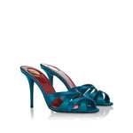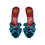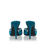 These Saint Laurent mules are crafted from a satin‑crepe blend, featuring a crisscross almond toe and a covered 95 mm stiletto heel. With a slip-on silhouette, leather lining, and sole, they combine elegant evening style with contemporary sophistication, ideal for formal events, cocktail parties, or refined evening wear.