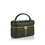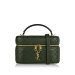 The Saint Laurent Gaby crossbody bag blends classic elegance with modern versatility in diamond-quilted leather. It features the iconic Cassandre logo plaque, a structured rectangular body, and gold-tone hardware. Featuring a zip-around closure, leather top handle, and detachable strap, this compact yet functional piece is ideal for both handheld and crossbody wear.