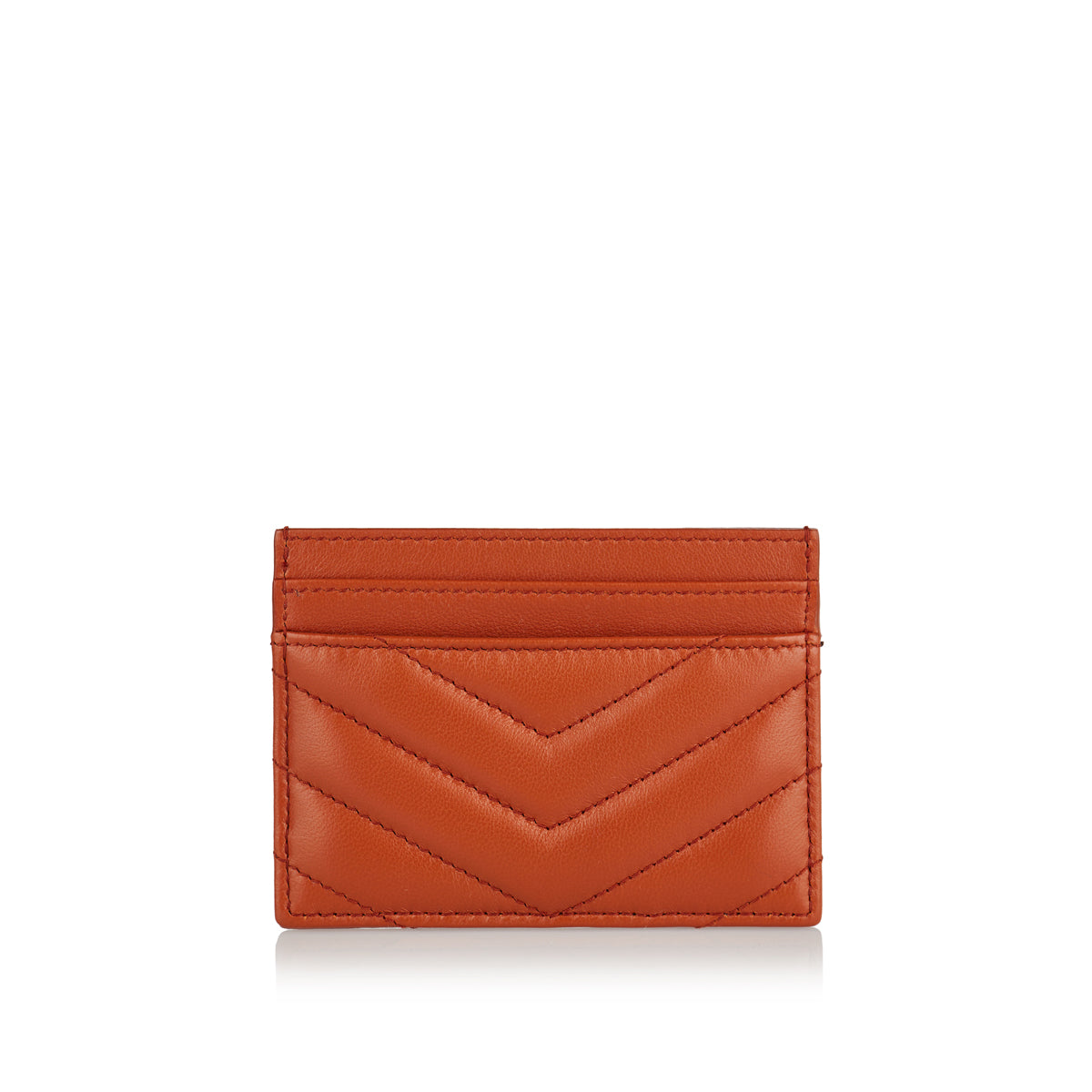 Embellished with the iconic Cassandre emblem in gold metal, this card case in dark mandarin leather features five sleek card slots for daily essentials.