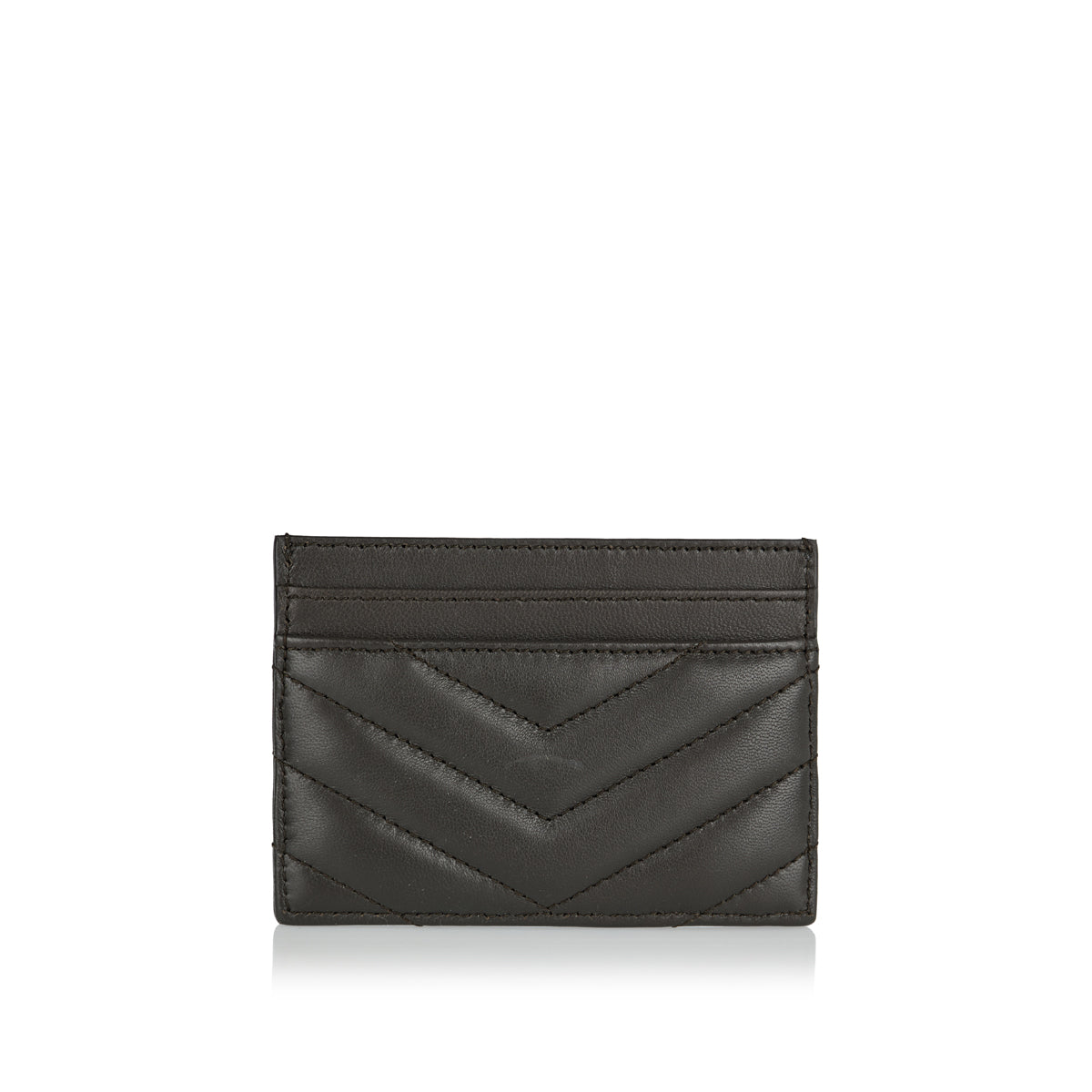Embellished with the iconic Cassandre emblem in gold metal, this card case in grey leather features five sleek card slots for daily essentials.