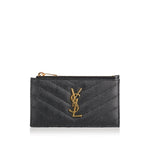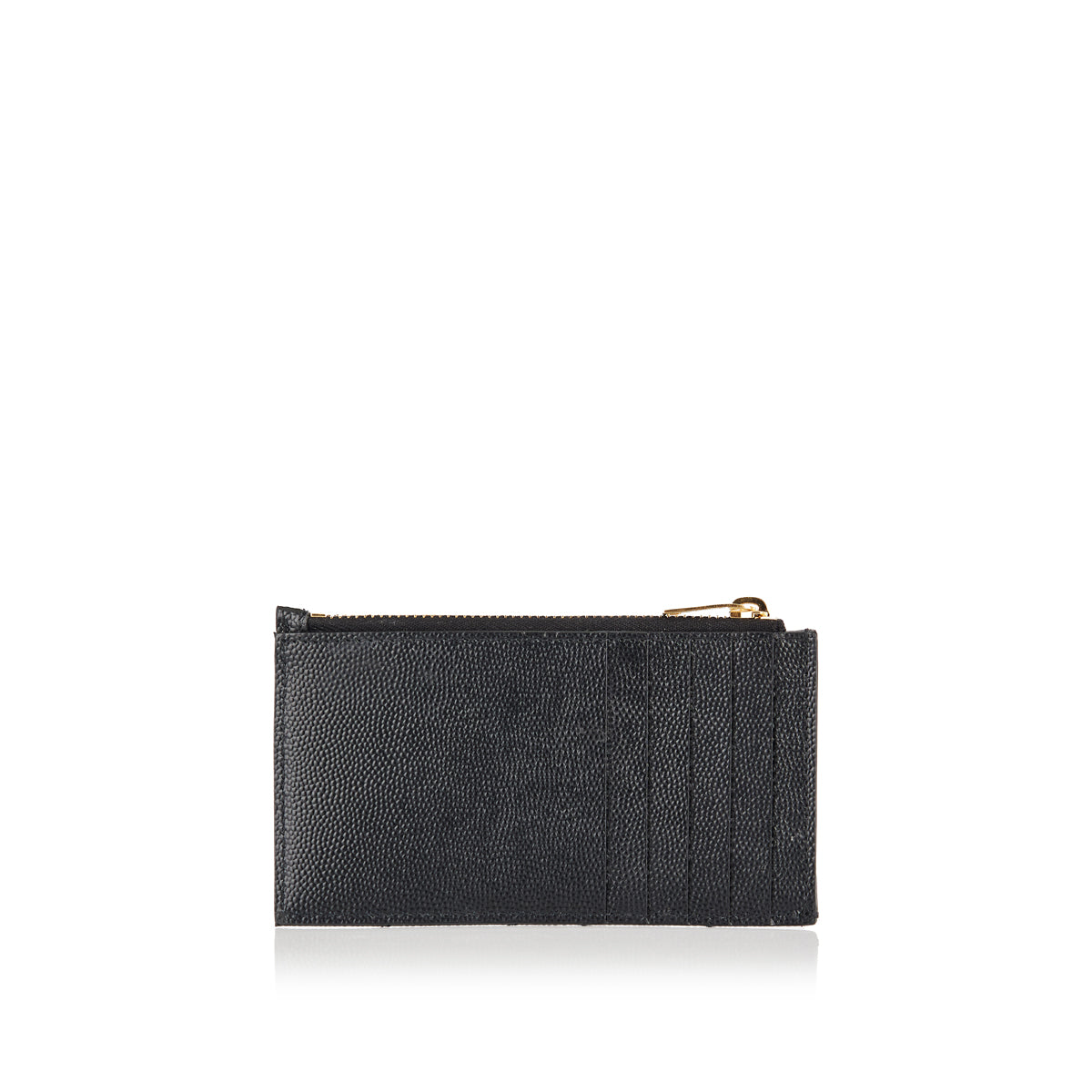 A refined card case crafted from Grain de Poudre leather with metal-free tanning, featuring the Faceted “Cassandre” logo and quilted overstitching. Equipped with a flap and zip pocket alongside multiple card slots, this piece blends elegance and practicality. Ideal for elevated slim wallets or formal accessory arrangements.