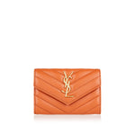 Luxury Saint Laurent Cassandre Matelassé small wallet in leather, featuring chevron-quilted overstitching and the iconic Cassandre logo for refined organization.
