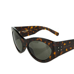 These butterfly sunglasses feature a tortoiseshell acetate frame with nylon lenses and wide temples. Elegant and bold, they combine modern structure with classic flair.