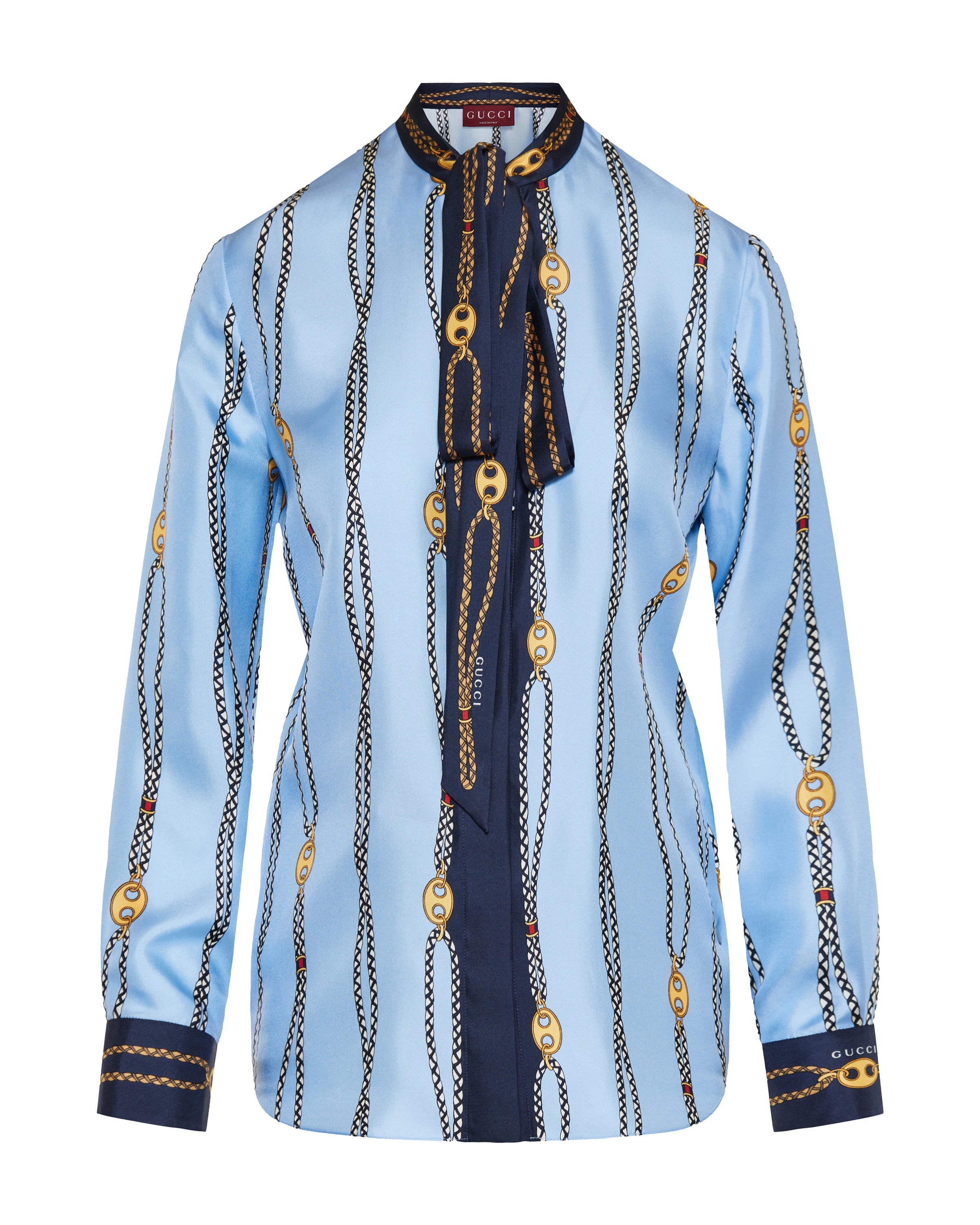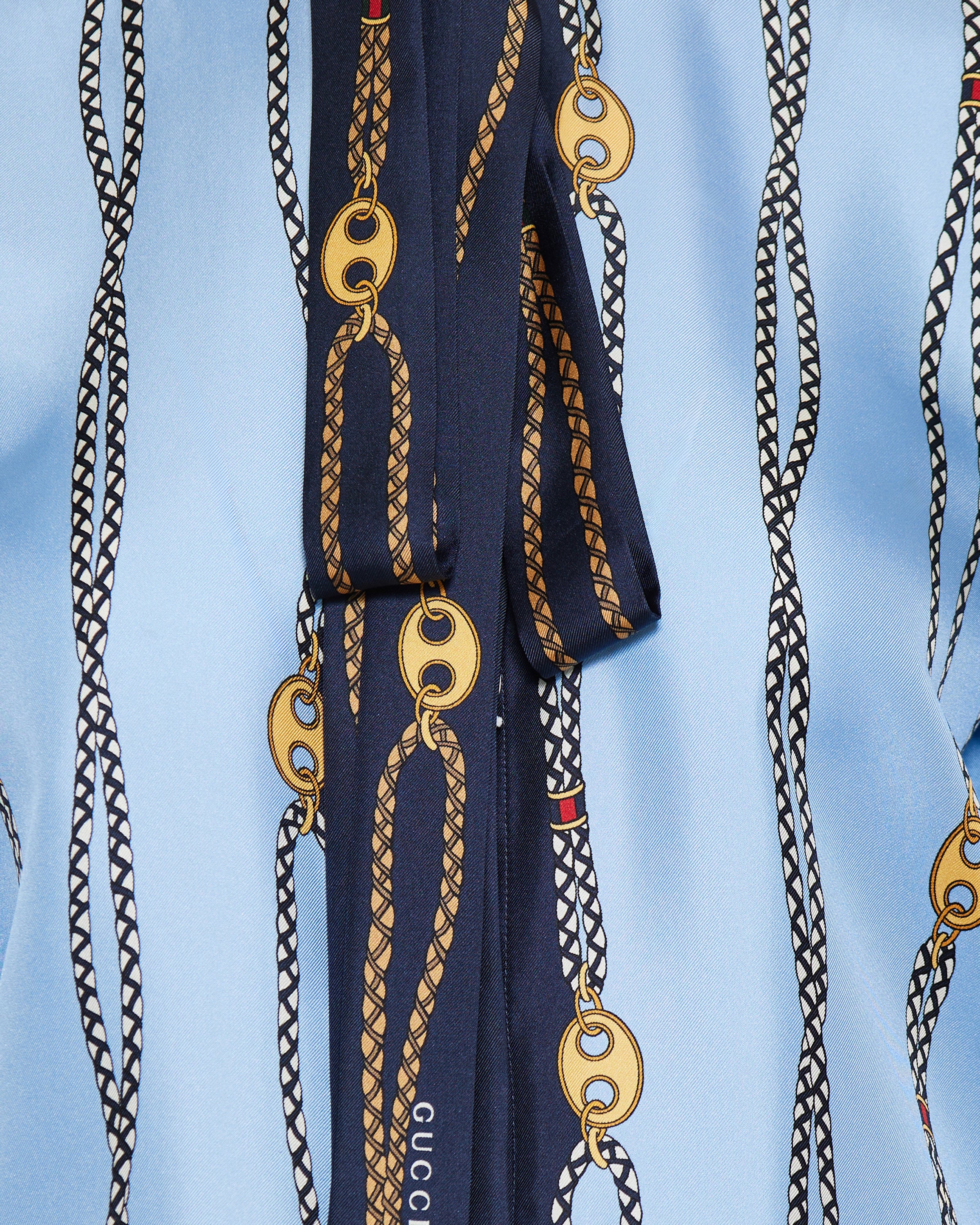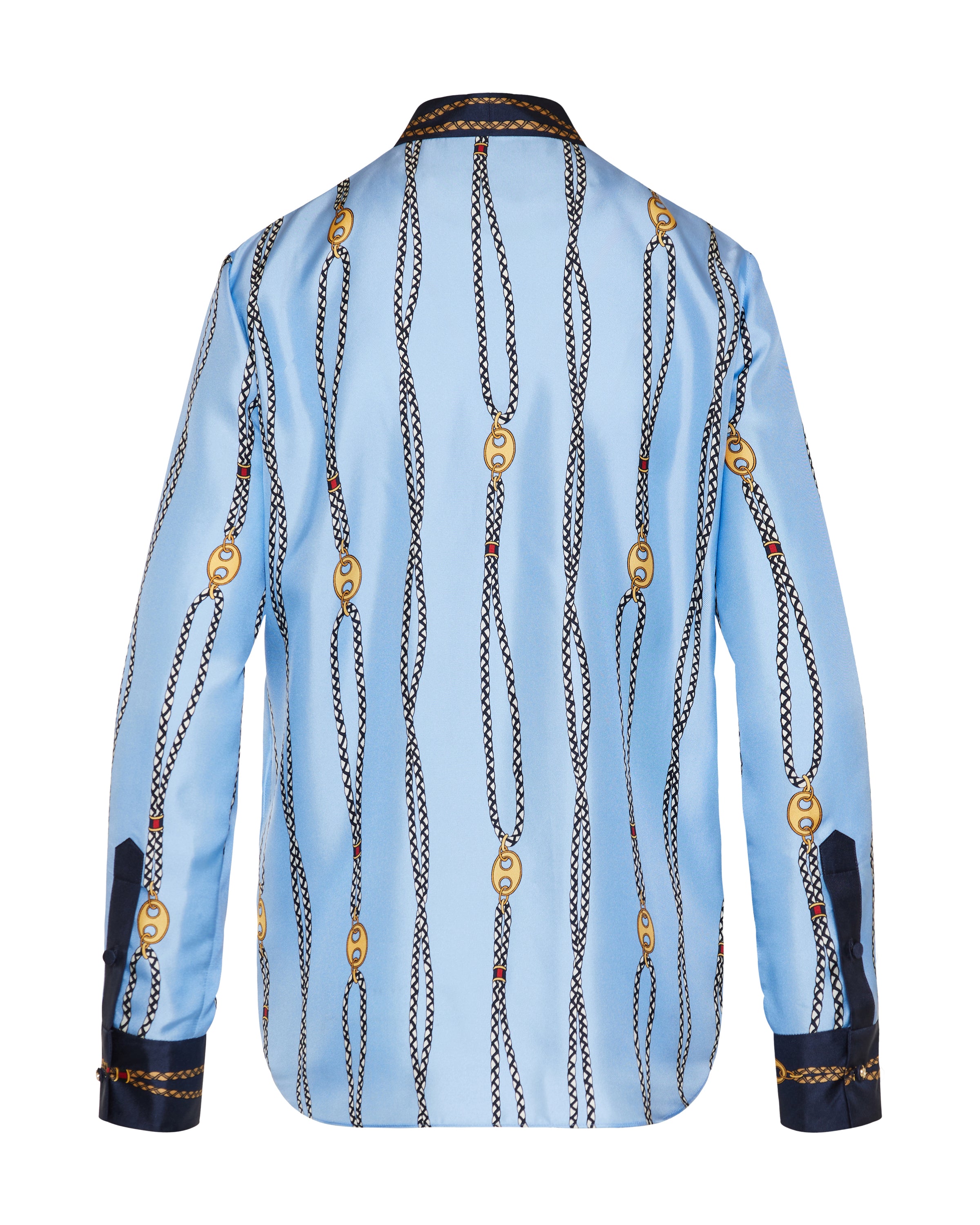 A refined Gucci regular‑fit shirt made of 100% silk, for elevated smart‑casual and daytime wardrobes. Designed with a classic point collar, long sleeves and front button closure to embody timeless Italian luxury and couture‑inspired sophistication.