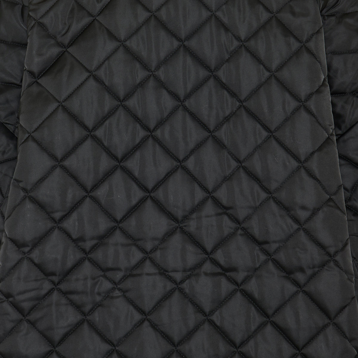 An oversized quilted jacket crafted from recycled polyester, featuring a neat collar, snap button closures, and slanted pockets. The elongated body and sleeves create a dramatic A-line silhouette, making it a versatile addition to both casual and formal wardrobes.