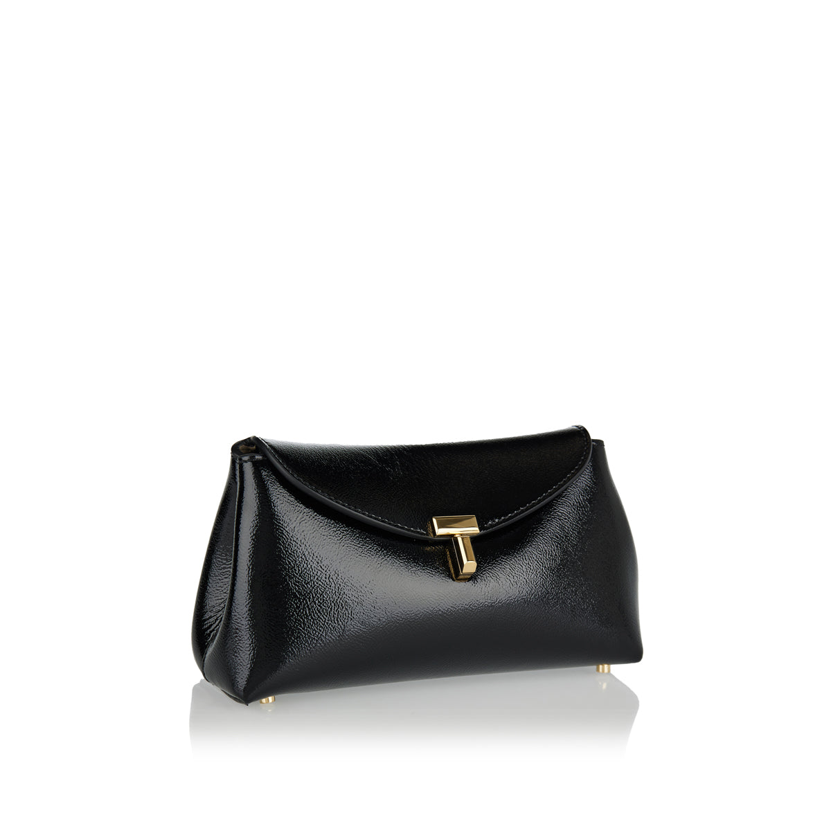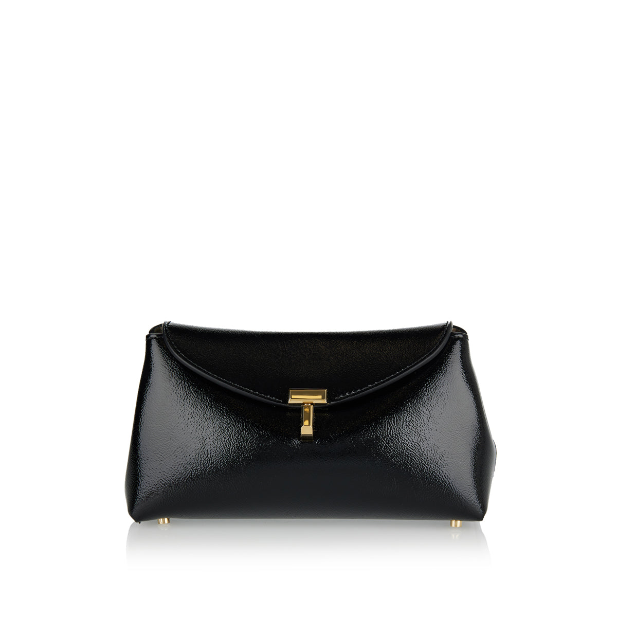 A refined mini clutch from Totême, featuring glossy naplack leather and the signature T-Lock twist clasp. Ideal for evening events and formal occasions, this compact accessory offers a touch of luxury and sophistication to your ensemble.