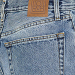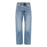 These jeans are crafted from organic cotton denim. They feature a mid-waist, straight fit with slightly cropped legs, finished with signature twisted seams for a flattering, feminine edge, suitable for both casual and smart-casual looks.