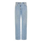 These loose-fit denim trousers are crafted from 100% cotton, featuring a front button and zipper closure. The unlined design ensures comfort, while the "Chez Valentino" patch on the back adds a signature touch. Ideal for casual or smart-casual occasions.