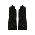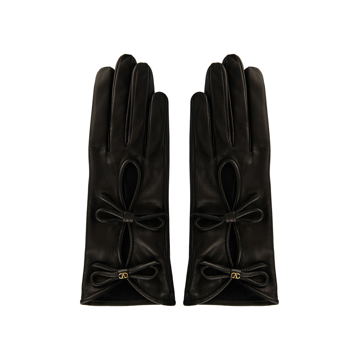 Valentino’s VLogo leather gloves are crafted from soft lambskin and feature elegant bows at the wrists alongside the signature metal VLogo detail. Fully lined in silk, they offer both luxury and refined style for day-to-evening ensembles.