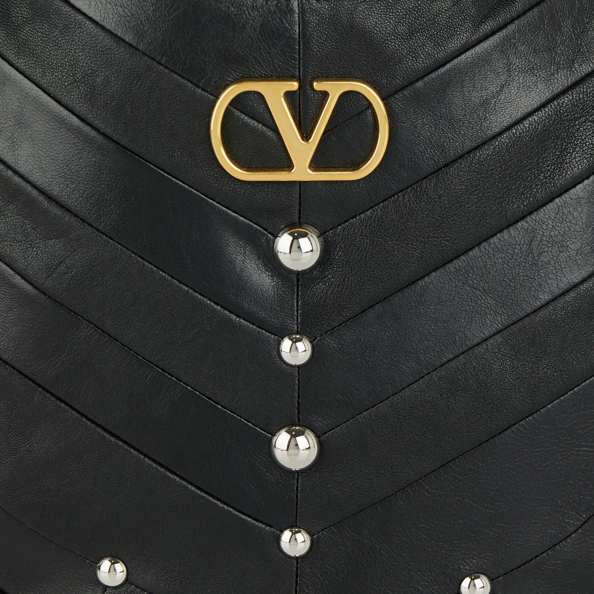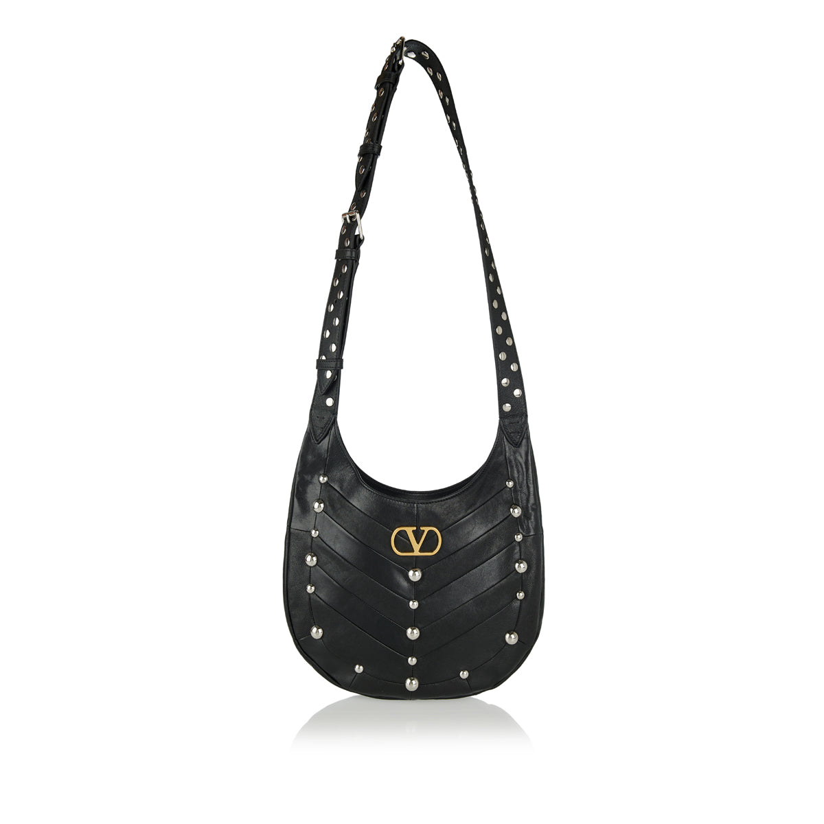Valentino Garavani VLogo hoboho small hobo leather bag with chevron pattern and studs. A refined accessory combining modern design with classic elegance.