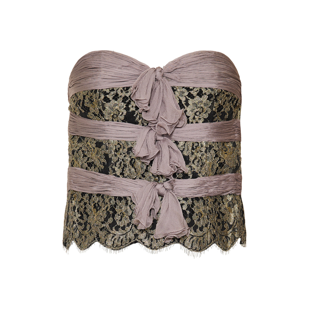 This Valentino top is crafted from luxurious Creponne Chiffon (100% Silk) and features intricate lace inserts. It boasts a sweetheart neckline, side zipper, and hook-and-eye closure. The top is lined with Georgette Stretch for added comfort.