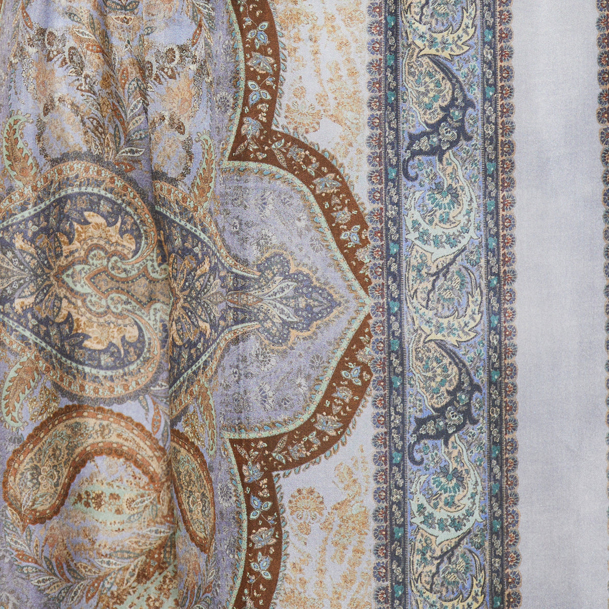 These Zimmermann Wanderlust relaxed trousers bring elegant ease with a free-spirited flair, perfect for resort wear or refined day-to-night styling. Crafted from lightweight habutai silk, they feature a mid-rise waist with gathered drawstring, placement floral print in soft blues and greens, wide-leg silhouette, and side pockets for practical sophistication.