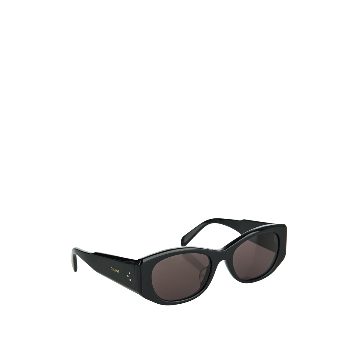 The Celine Rectangular S329 Sunglasses feature a bold rectangular acetate frame in black, complemented by dark purple lenses that offer UVA and UVB protection. The design is accented with the iconic Celine signature and three-dot motif on the temples, adding a touch of luxury to this statement accessory.